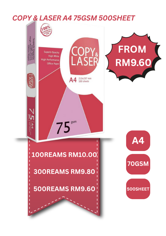 A4 Paper/Copy & Laser/A4 Kertas 75gsm/A4 Kertas 80gsm/Copier Paper (500's/Ream)